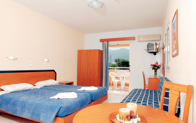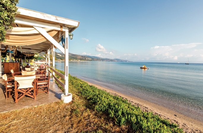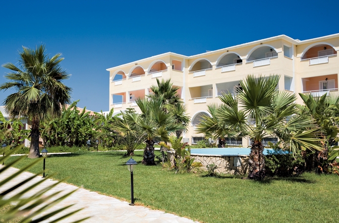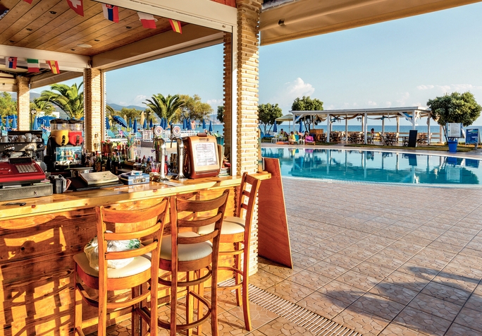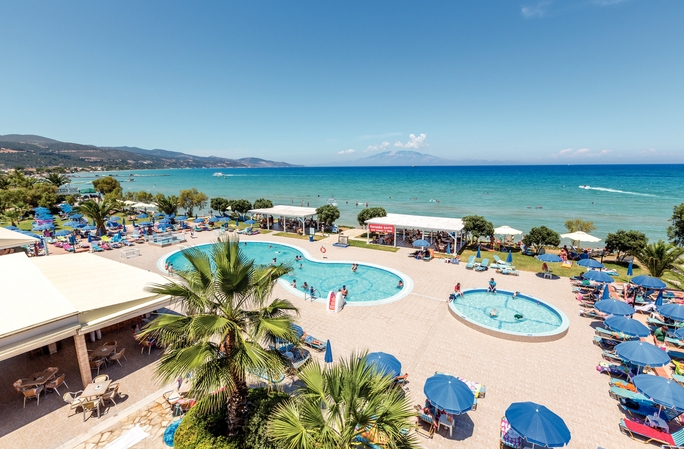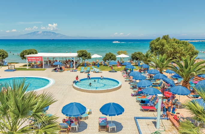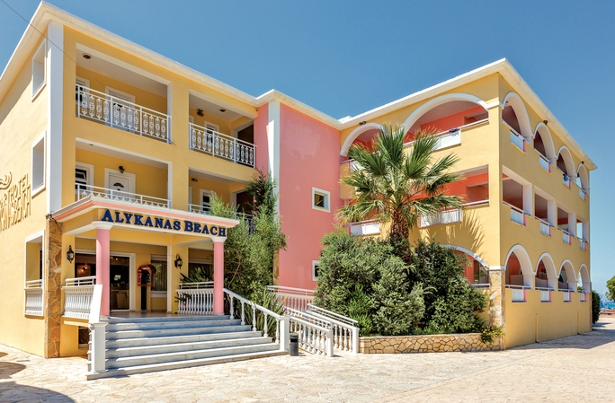 Set in idyllic, well-kept landscaped gardens, the luxurious Alykanas Beach Apart Hotel offers a large parking area, a 24hr reception with comfortable sofas, a television and an internet corner. The large swimming pool and terrace are literally on the edge of the shore offering breathtaking views and plenty of sunbeds and umbrellas for you to relax in. There is also a separate children’s pool and Jacuzzi as well as shower and toilet facilities. In front of the pool there are a couple of steps which lead onto the beautiful sandy beach of Alykanas where you will find sunbeds and umbrellas next to the sea for a small extra charge. Behind the pool you will find a large spacious snack bar serving delicious breakfast and various snacks from 8:00am until 5:00pm. To the side of the pool is a children’s play area almost like a mini adventure playground complete with swings, climbing frames and high slide to keep the children entertained. So either you are a family or a couple, Alykanas Beach is the ideal destination for you!