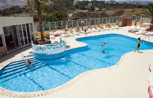 A relaxing and comfortable hotel located near to some of the best beaches around Faliraki and conveniently close to the town centre, the Ano Kampos Hotel is an ideal place from which to enjoy the sun and outstanding views of the beautiful Green island of Rhodes. The hotel has two outdoor swimming pools with sun loungers to unwind on and there is a restaurant offering a continental breakfast, lunch and dinner with a terrace for outdoor dining and a children’s menu and pool so your little one’s can have a great time too. There is a pleasant garden to add to the relaxation and the hotel’s bar offers drinks and snacks throughout the day so you can enjoy some quality time by the pool. With the sea and beaches just a short distance away, guests can enjoy the white sandy beaches in no time and there is also the town centre with its thriving night life and a nearby Water Park for exciting day time thrills. Other sites of interest close by include the Anthony Quinn Bay and Afandou Golf Course – if you feel like a quick round before dinner. Each room is cosy and comes with air-conditioning and private bathrooms with bath or shower and hairdryers available on request, and they also carry water, refrigerators and in-room safes, as well as tea and coffee making facilities for your convenience.The Ano Kampos Hotel has currency exchange and luggage storage at front desk, as well as laundry facilities, a television in the lobby and Wi-Fi available throughout.