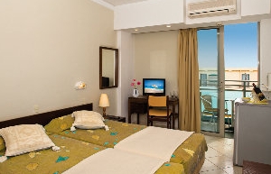 The hotel is a typical white-facade Mediterranean resort hotel, located right by the beach on the well-known Greek island of Rhodes. This charming beach hotel has 115 guestrooms and a lobby area with a 24-hour reception, a hotel safe, currency exchange facilities, a pub and a restaurant. [LOCATION].Located opposite a golden sandy beach on the famous Greek Island of Rhodes, the hotel is a reasonably priced holiday destination for beach holidaymakers. This resort-style complex is a short walk away from the medieval city of Rhodes and the town’s restaurants and popular attractions. It is also just a few kilometres away from the harbour and the airport. Rooms.Featuring simple decor and a comfortable, homely atmosphere, the guest rooms at this hotel in Rhodes have many amenities and comforts, such as balconies with views of either the sea or the town, a private bathroom with bath tub and hairdryer, tea and coffee making facilities, a direct dial telephone and a radio. A fridge, minibar and individually regulated air conditioning come with the rooms as standard.