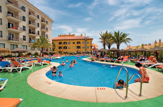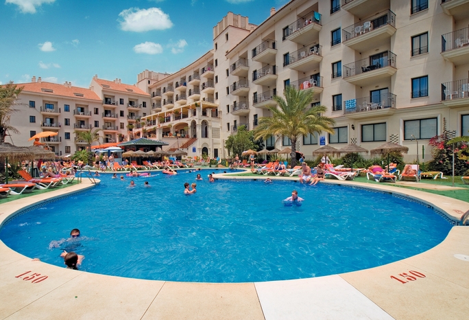 With sweeping views of Benalmadena from its hillside setting, this exciting aparthotel has something to suit every holiday style. Unwind in the pool during the day or if you feel more active then make use of the fitness room or take a stroll along the beach. In the evening, why not pay a visit to Benalmadena with it’s many attractions.Location150m from the beach and 2.5km from the resort centre.Board Basis: Self Catering ’Half BoardFood and Drink: Buffet restaurant ’Snack bar PubSwimming Pools: Outdoor swimming pool Climatised indoor swimming pool ’Sun terrace with sunloungers and parasolsEntertainmentDaytime and evening activitiesActivitiesMini-golf ’Volleyball French bowls Small football area ’Games roomHealth & Beauty: Fitness room ’Spa ’Sauna Whirlpool ’Beauty treatmentsChildren: Children’s pool ’Hotel-run kids’ club (4-12yrs, subject to availability) ’PlaygroundChild prices: apply to children 2-16 (Self Catering) and 2-12 (Half Board)Facilities & Services24hr reception with money exchange ’Laundry ’Two lounges FREE wifi in reception area and Snack barAccommodationStudios have 1 double bed and 1 sofa bed and sleep 3 adults or 2 adults and 2 children. One bedroom apartments have 2 single beds and 1 double sofa bed and sleep 2-4. Two bedroom apartments have 2 single beds, 1 double bed and 1 sofa bed with pullout bed and sleep 2-6. All include heating, satellite TV, kitchenette with cooking rings, fridge, microwave, kettle and toaster, lounge, iron and ironing board, bathroom with shower over bath and balcony.Key Facts: 182 rooms ’7 floors «4 liftsOfficial rating: 4 starPlease note: Due to its elevated position, this hotel is not recommended for customers with walking difficulties.A refundable breakage deposit is payable on arrival.