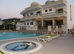 This apartment complex is located 700 m from the famous Faliraki beach, and 1 km from the centre of town, in a quiet setting. It lies 15 km from Rhodes.–This apartment complex is ideal for families and couples seeking a relaxing holiday and comprises a total of 18 accommodation units, including 11 apartments. Facilities on offer to guests at this air-conditioned establishment include a lobby, a hotel safe, a games room and a TV lounge. There is a children’s playground for the younger guests, as well as a cafe, a bar and a breakfast room. Guests will appreciate the wireless Internet access and there is a car park and covered garage parking available for those arriving by car.–The accommodation units are spacious and comfortable and they offer a tranquil atmosphere. All rooms come with a private bathroom with a shower and a hairdryer. They are equipped with a direct dial telephone, a TV, Internet access and a safe. They have a kitchenette with a fridge and tea and coffee making facilities. Furthermore, individually regulated air conditioning units are provided for an additional fee.