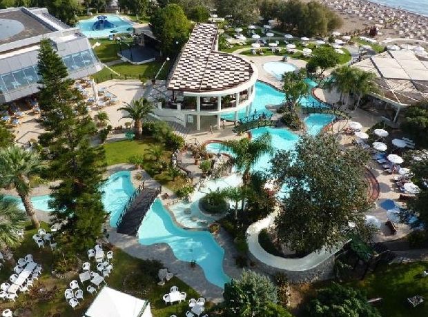 Located on a hillside just off the beach a short distance from Faliraki town centre on the gorgeous Greek island of Rhodes, the Calypso Palace Hotel is a relaxing and ideal spot from which to enjoy a relaxing and truly memorable holiday. With an outdoor pool to enjoy with views out onto the Aegean sea and a Garden to help you soak up the sun in peace and quiet.The hotel is also just a mile from the town centre of Faliraki where a thriving nightlife and selection of shops and restaurants makes it a must-visit spot on the island. Visitors must also visit Rhodes Town, with its rich history and sightseeing opportunities including the Archaeology Museum, home of ancient statues of the gods and goddesses of ancient Greece. Back at the hotel, there is plenty to do including a gym, tennis, beach volleyball, pedal boats and canoes available, as well as windsurfing – at Calypso Beach – and the hotel’s snack bar, pool bar and restaurant offers a buffet three times a day with live music and shows too. The Calypso Palace Hotel has comfortable rooms available with balconies or terraces facing onto the sea, and convenient facilities such as air-conditioning, television with satellite channels for your entertainment and hairdryer in the bathroom. There is also a fridge so you can store all the treats you pick up from days out on the island and the hotel has a 24-hour front desk to make sure help is at hand at all times.