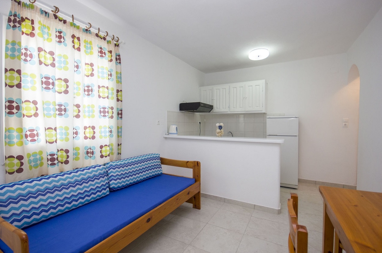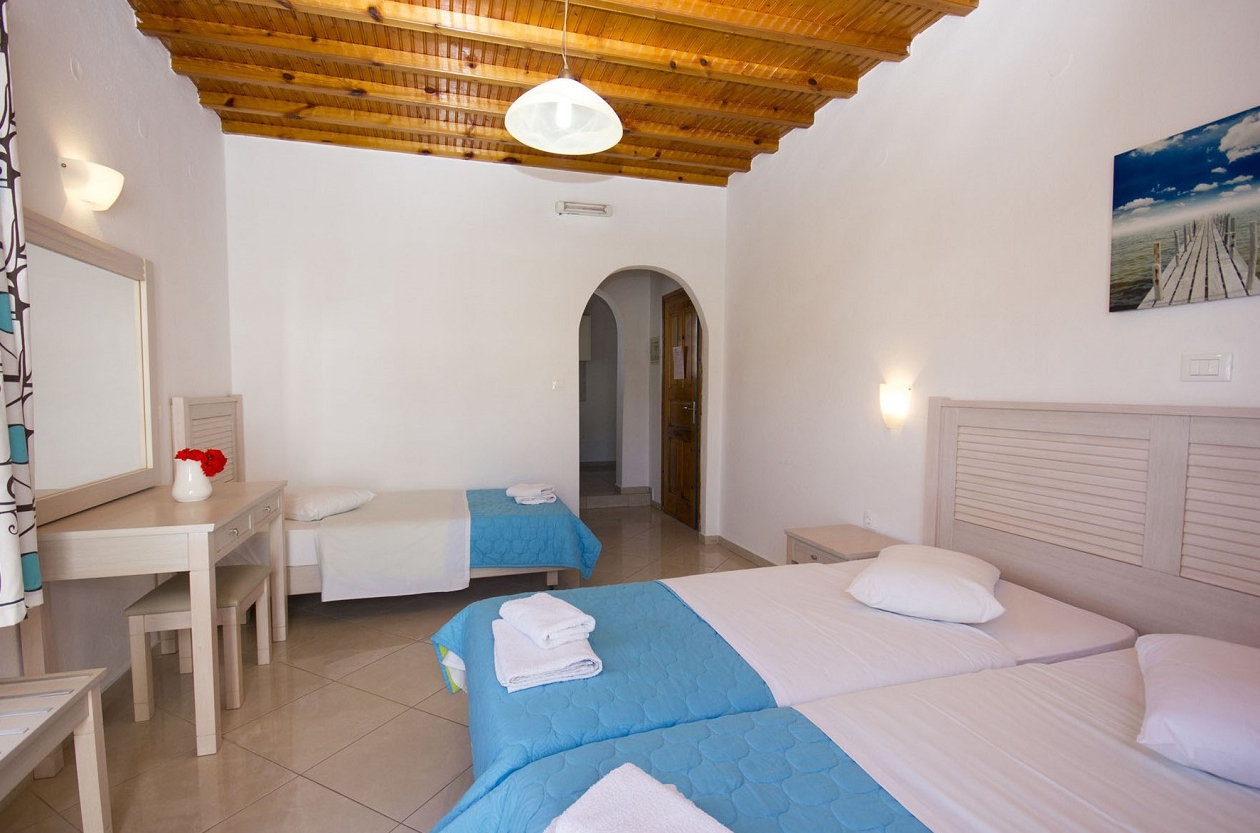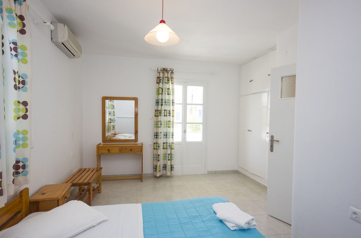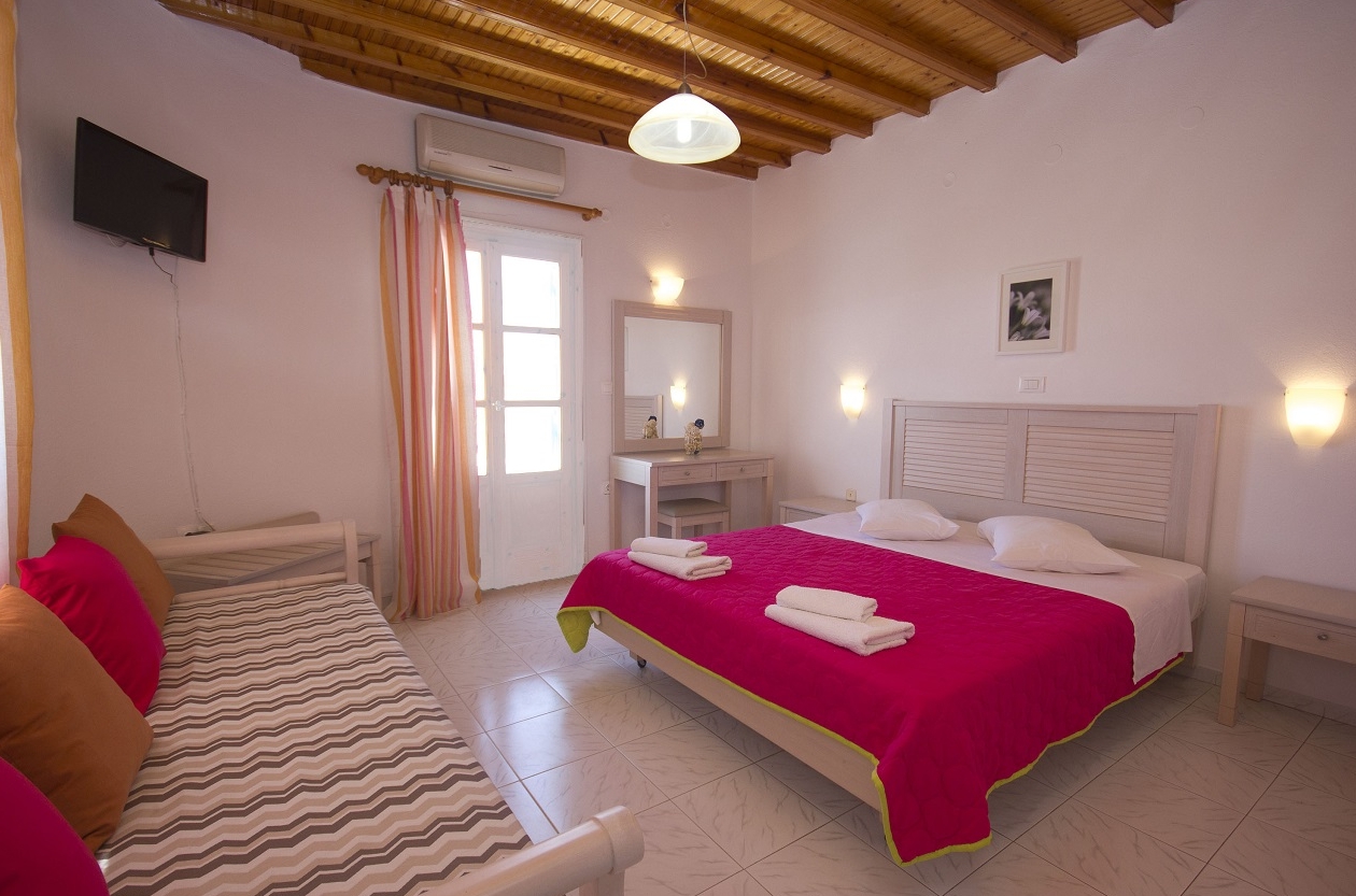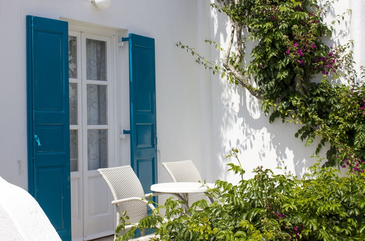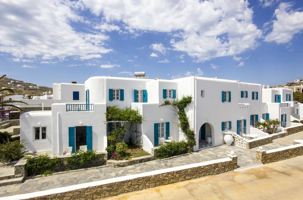 Supremely located just a 2 minute walk away from Ornos Beach and Ornos Town Center, Cyclades Studios provide a central, however quiet location, ideally for calming summer holidays near the beach. The exclusive location of Cyclades Studios, combines the small distance away from Mykonos Town and its nightlife at about 10 minute drive with this quiet district of Ornos, very nearby to the beach. Furthermore, car and moto rentals can be arranged at very good rates in the property and there is a private parking lot provided free of charge as well. Alternatively, just 1 minute walk away there is a bus station that connect Cyclades Studios with all major spots of Mykonos Island, whilst the surrounding area located numerous restaurants, cafes and supermarkets.