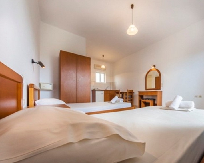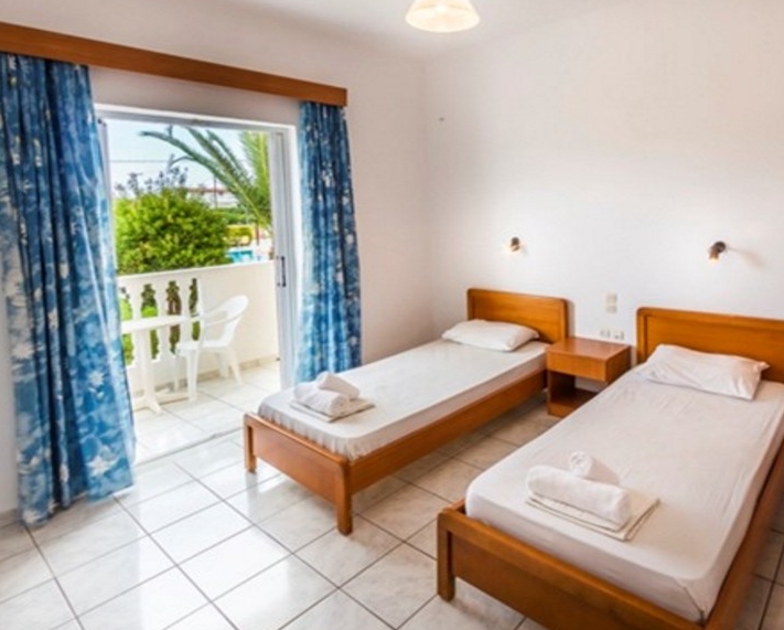 Studios sleep 2/3 people with air conditioning (payable locally), twin beds, safety deposit box (payable locally), a kitchenette with 2 ring cooker, a private bathroom with shower and a private balcony or terrace with inland view. Cot hire is available (payable locally). One bedroom apartments sleeping up to 4 people are also available.