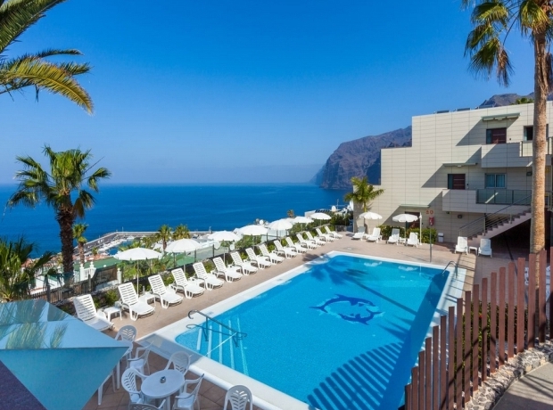 The Diamond Apartments is located 250 m from the beach in the beautiful area of Los Gigantes overlooking La Gomera and the harbour on the west coast of the Island paradise of Tenerife. Completely refurbished in 2010, this is an official 3 Star vacation retreat, a comfortable base for couples and families with 35 one and two bedroom apartments equipped with modern amenities overlooking the sea and the famous cliffs. There is easy access to marvellous beaches, shops, restaurants, cafes and bars. Tenerife South Airport is 40 km from the hotel. Local Tips: The complex is in a good position for visits to Teide Nationa Park, and tropical Loro Parque, or to enjoy boat cruises and watch dolphins and whales.HotelFood, drink and entertainment: Self catering apartments with an option for Bed and Breakfast. There is a poolside bar with light meals and snacks. The fully equipped kitchenette is perfect for cooking any meals and there are restaurants, cafes, bars and nightclubs in the area. Sports, games and activities: Outdoor swimming pool, sun-beds and parasols, children’s section of the pool, large solarium, gymnasium machines. Activities nearby include Golf within 3 km, fishing, Casino, hiking, cycling, Diving, and Snorkelling. Additional: 24 hour reception area, laundry, mini market, Internet access, elevator. Please note some of the apartments are with stairs and unsuitable for guests with walking difficulties.