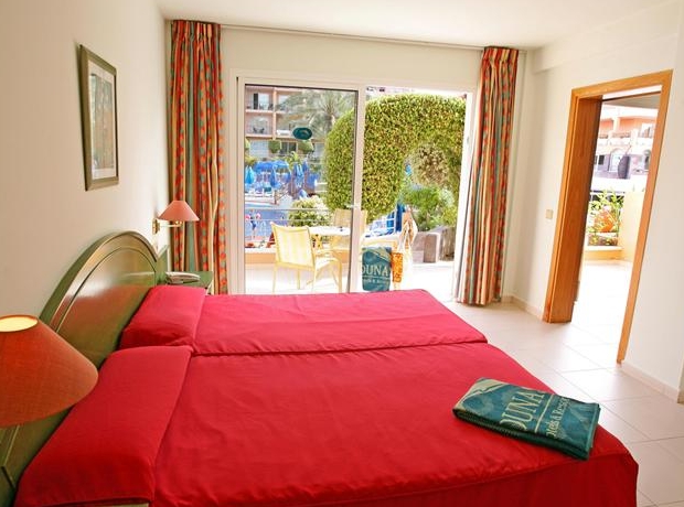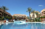 The Dunas Mirador Maspalomas Hotel is located in the residential area of Sonnenland on the island paradise of Gran Canaria just 3.5 km to the famous sand dunes, and close to the wonderful Maspalomas beach, and the interesting shopping centre El Tablero (approx 500m away). Occupying 6 buildings of 5 floors, this friendly 3 Star hotel is fantastic for couples and families with a host of recreational facilities, a worry-free All Inclusive program, nearby attractions and 437 rooms surrounding the vast shimmering swimming pool. Getting to the Hotel: Gran Canaria Airport is 35 km from the Hotel. Local Tips: The hotel has a free shuttle to Maspalomas beach. Playa del Ingles is nearby and the Maspalomas golf course is three km away. Rates Valid For UK Market OnlyHotelDining: All Inclusive accommodation. Dunas Mirador Maspalomas offers a delightful restaurant with terrace serving breakfast, lunch, and dinner with a wide range of varied hot and cold dishes and a rich dessert buffet. Guests are requested to be properly dressed for dinner. The hotel has a disco with karaoke, bar/cocktail lounge, pool bar with different sorts of light dishes, snacks and ice-creams. All Inclusive Program: All local alcoholic and non-alcoholic drinks during the meals in the restaurant, at the pool bar and in the discotheque with the seal “all inclusive” are included until 23:00 h. All drinks ordered at the Bar Hall are excluded. The entertainment program often presents live music and some entertainment in the evenings (bingo, quizzes and occasional parrot show). Max All Inclusive provides International brand drinks, EBD is not applicable to gala supplements, 3rd adults do not have dicounts with the gala dinners. Activities: Two swimming pools (one heated in winter), Jacuzzi, sun beds and parasols, table tennis, Giant Chess, pool tables, beauty centre with massage services. Bicycle hire, water sports, (windsurfing, water skiing, sailing, diving etc), and horse riding nearby. The complex offers a varied entertainment programme comprising of sport activities such as archery, darts, shooting and water polo during the day. There is a children’s pool, Mini Club (4 to 12 years, 7 days a week from 10:30 am to 1:30 pm), children’s playground and a mini disco. Additional: 24 hours reception, currency exchange, Internet corner, Wi-Fi in all common areas and rooms (fee), free shuttle bus service to the beach and the famous dunes of Maspalomas several times per day, pool towel service (with deposit and daily charge), babysitting service on request (local charge), laundry service, elevator, car hire facilities, medical service, shops, supermarket,. Christmas Day and New Years’ Eve Gala Meals with supplement (mandatory).