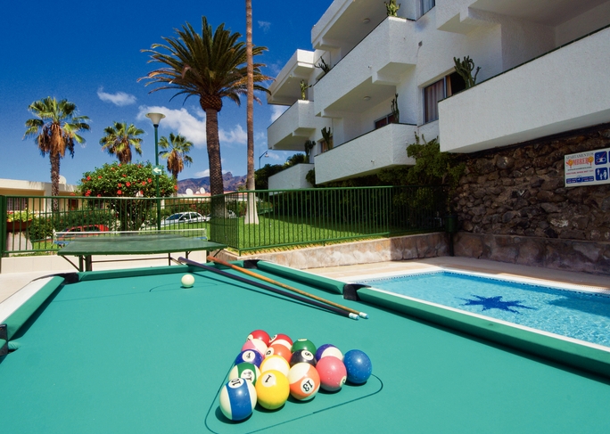 The El Sombrero Apartments is s located in the beautiful area of Los Gigantes not too far from the three main beaches of Puerto Santiago, Los Gigantes Beach in the shadow of the impressive Gigantes cliffs, and Playa de La Arena Beach near to the Punta Blanca (Surfing Area). Completely refurbished in 2007, this is a terrific hotel for couples and families with 42 studio and one bedroom apartments equipped with modern amenities and access to marvellous beaches, shops, restaurants, cafes and bars. Tenerife South Airport is 40 km from the hotel. Local Tips: The complex is in a good position for visits to Teide Nationa Park, and tropical Loro Parque, or enjoy boat cruises and watch dolphins and whales. HotelFood, drink and entertainment: Self catering apartments. There is a poolside bar with light meals and snacks. The fully equipped kitchenette is perfect for cooking any meals and there are restaurants, cafes, bars and nightclubs in the area. Clients make their own continental breakfast from the tray including tea , coffee , sugar. milk ,orange juice, butter , marmalade for the days booked in the complex (provided every morning) and then Fresh Bread and fruit will be provided in their apartments each morning Sports, games and activities: Outdoor swimming pool, sun-beds and parasols, children’s pool, table tennis and Billiards.