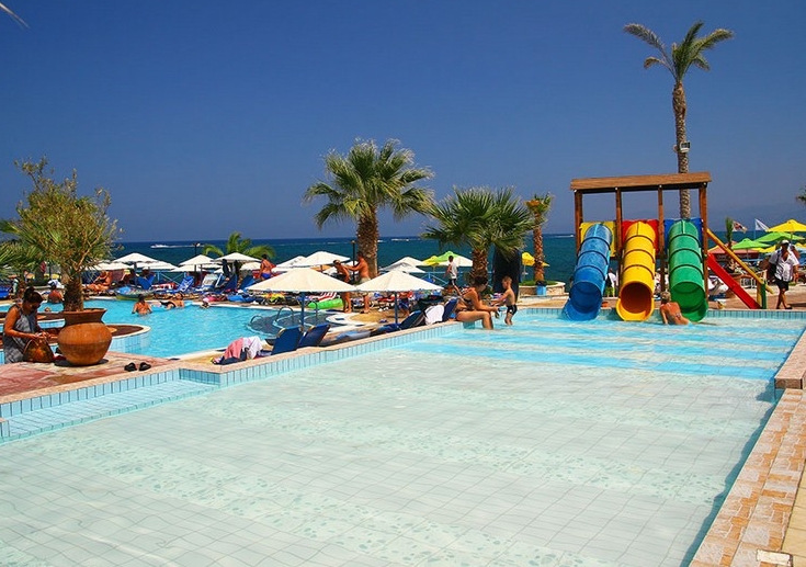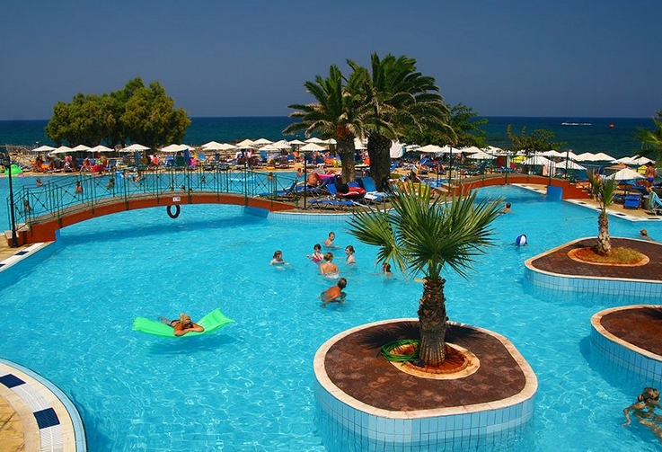 Eri Beach & Village rests 25 km east of Heraklion International airport and 1 km from Hersonissos on the north coast of the Mediterranean island of Crete.