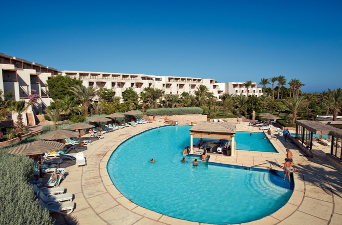 Set in beautiful, mature landscaped gardens this modern, comfortable hotel offers first class service and is ideal for couples looking for a quiet, peaceful setting in which to relax and unwind. LocationIn an up-and-coming area, directly on the sandy beach with stunning views over Makadi Bay the resort centre of Hurghada is 30kms away a shuttle bus goes to Hurghada twice a day (available at a local charge) Features: Five outdoor swimming pools sun terrace with sunloungers and parasols gardens two international buffet restaurants seafood á la carte restaurant five bars including a beach bar serving snacks and light meals TV room souvenir shop internet facilities 24hr reception Activities. Features: free activities and entertainment tennis court dive centre watersports including windsurfing pool table massage. For Children: Own pool hotel-run kids’ club (4-10 yrs) highchairs and cots available. Rooms sleep up to 4 adults plus one child and have double or twin beds (plus extra child beds if required), air conditioning, satellite TV, telephone, hairdryer, shower room and a balcony or terrace with sea view. Prices are based on 2 adults sharing on All Inclusive. Twin rooms for sole use and suites sleeping up to 4 adults plus 1 child (which are larger, located in the upper floors, and have complimentary fruit basket on arrival) are available at a supplement. All Inclusive: Food: Buffet-style breakfast, lunch and dinner at the buffet restaurants snacks served at the beach bar at selected times between meals afternoon tea and cakes. Drinks: An unlimited amount of hot, soft, alcoholic drinks (excluding international brands) served for a minimum of 12 hours per day please note that fresh fruit juices are not included. Sports & Leisure: Activities usually include aerobics, aquaerobics, bicycles, canoes, beach football, French bowls, table tennis, tennis (daytime), beach volleyball and windsurfing. Entertainment: Evening entertainment programme includes shows and dancingFeatures shown are subject to change and restrictions