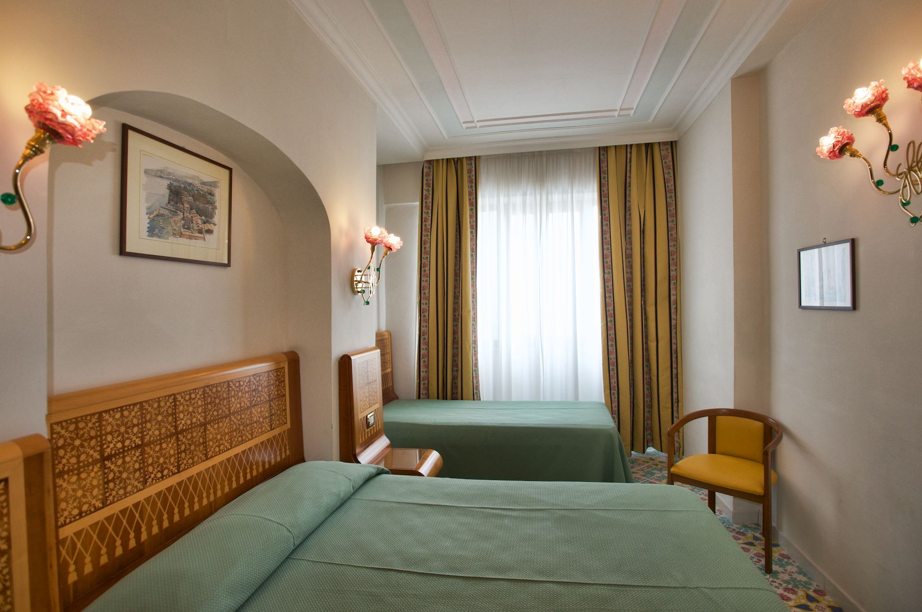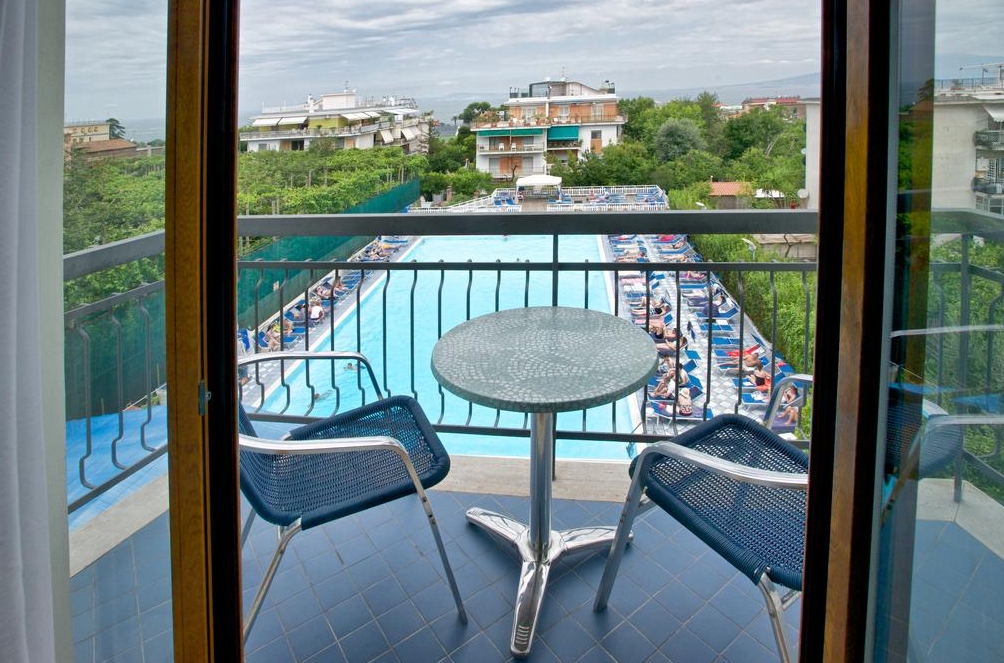 The 130 rooms were renovated in 2003 . ‘Standard rooms’ have a balcony overlooking the street while the ‘Superior rooms’ have balconies overlooking the Gulf of Naples or the pool. ‘Economy rooms’ have a window or a small terrace if located on ground floor, and have no view.