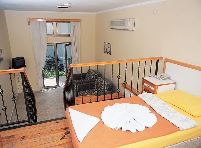 The Green house Apart Hotel has brought a fresh- new look to the architecturally jaded landscape of GUembet. Situated 2 km from Bodrum- in the bay of Gumbet it offers an ideal base for your holiday. With the center of Gumbet (with it’s many shops- bars- restaurants and nightclubs). Just 10mins away- the 24 hours minibus service to Bodrum passes right by the hotel’s door. For beach and water-sport lovers- the bay of Gumbet is 5 mins away. The quitier bay of Bitez is 10 mins away by minibus. Bitez is a heaven of water-sports- from windsurfing to water-skiing- you can find it here.The Green House Apart Hotel offers bright- spacious and airy apartments.