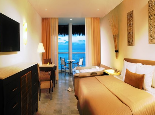 Find the ideal holiday in the sunshine of Playacar at the Playacar Palace, which offers top notch service, well-appointed rooms, fantastic views and friendly staff. You will be amazed by the good range of activities available and the quality facilities. To top it off, your stay will be action packed and really memorable. Set in the Playacar resort complex, near the bustling streets and shops of famous 5th Avenue in Playa del Carmen, this intimate and luxurious beachfront resort offers 208 truly elegant accommodations. All Superior Deluxe rooms feature views of the turquoise Caribbean Sea, first class amenities, and a Jacuzzi. Outside, enjoy a refreshing sparkling pool with a swim up bar. For children, fun activities at the kids club and a small pool will let parents relax and enjoy some quiet time. Dining is found at three fine restaurants, or order from our 24-hour room service menu. Nearby is Playacar Spa and Golf Club where guests may golf on the club’s verdant 18 hole course or get pampered at the spa.