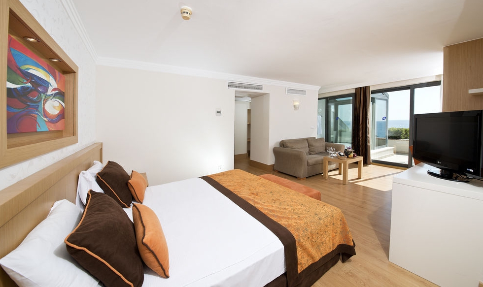With total pool area of 4500 m2, green territory with orange trees, playgrounds for families with children and 5 a-la carte restaurants with various types of cuisine, our hotel offers all its guests an opportunity to spend a unique holiday.