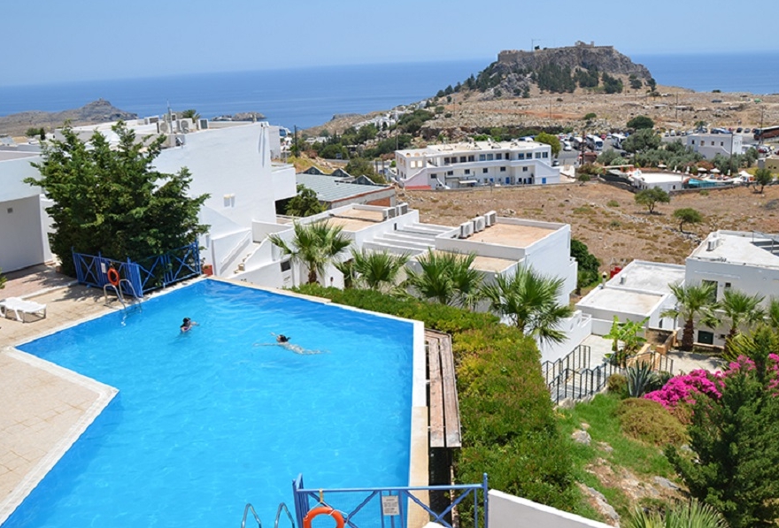 All Studios sleep up to 2 or 3 people with twin and single beds, private facilities, air-conditioning, kitchenette, safe and balcony or terrace with pool or countryside views, or overlooking Lindos village and the acropolis.