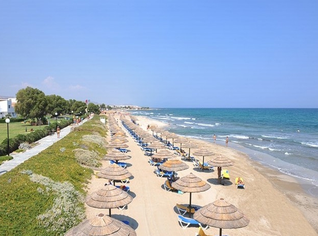 The 4-star Lyttos Beach Hotel nestles amid lush gardens of palm trees and flowers leading directly to the beach just 5km outside the village resort of Hersonissos on the Greek Island of Crete which offers a myriad of urban facilities and nightlife. The whitewashed Lyttos Beach Hotel has a total of 349 appealing rooms for a variety of occupancy needs from which you can enjoy terrific facilities. A choice of restaurants with a varied menu, bar refreshments and evening entertainment, daily organised activities, 3 swimming pools, spa and fitness facilities, nearby water sports and recreational activities, including 15 tennis courts! Children have a Kid’s Club, pool and playground and menus available. All the ingredients for a full-on holiday are here – plenty for the entire family to enjoy. Book into the 4-star Lyttos Beach Hotel outside Hersonissos on the Island of Crete, Greece and have fun. Getting to the hotel: 20km from Heraklion International Airport. Local tips: 5km from Hersonissos village; 25km from the capital, Heraklion.HotelFood, drink and entertainment: Main buffet restaurant serves an early and late breakfast, lunch and evening dinner of traditional, local and international dishes and presents themed nights; the Tavern “Zorbas” offers buffets and set menus for lunch and dinner (reservation required for evening dining); and there are 3 bars: main bar, pool bar which hosts music and dancing and the wellness bar. There is an entertainment team and DJ. Sport, games and activities: 3 swimming pools: Olympic size, relaxation and activity pool with slides, sun terraces and gardens with free loungers, parasols and towels; Spa Centre includes saunas, pool, massages, body and beauty treatments for a charge and a gymnasium; 15 tennis courts, basketball and volleyball courts, mini football pitch, table tennis, billiards; tennis and golf lessons available; an animation team supervises daily activities; and there are water sports available at Star beach Water Park less than 5km away. For the kids: Kid’s Club with supervised activities and games; children’s pool and playground.