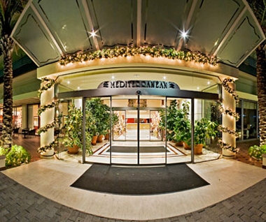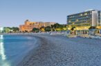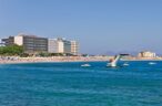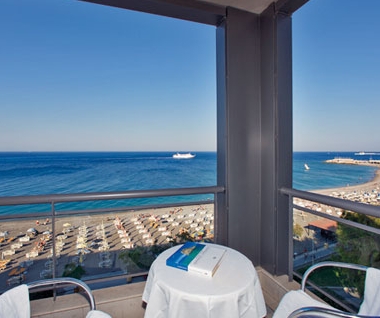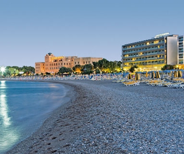 The Mediterranean Hotel is in the heart of Rhodes Town overlooking the most popular sandy beach near the Aquarium and just minutes from resort centre, next to the Casino and a short distance from the Medieval City, Castle of the Knights and the Ancient Ruins. The hotel features 241 spacious and elegantly furnished guest rooms and suites, most of which benefit from outstanding views of the Aquarium, the beach and the blue Aegean Sea. This beachfront hotel will appeal to families and couples looking for a good standard of accommodation with stylish décor and a personalized service, ideal for a relaxed holiday in Rhodes Town. The town is divided into 2 distinct areas; the modern part has good shops, tree-lined avenues, large public buildings, international restaurants and nightclubs. The old town has cobbled streets, tavernas and a fortress built by the Knights of St John. The town centre harbour area was once the site of one of the seven natural wonders of the ancient world, the 100 foot Collossus of Rhodes but is now home to yachts from around the world.