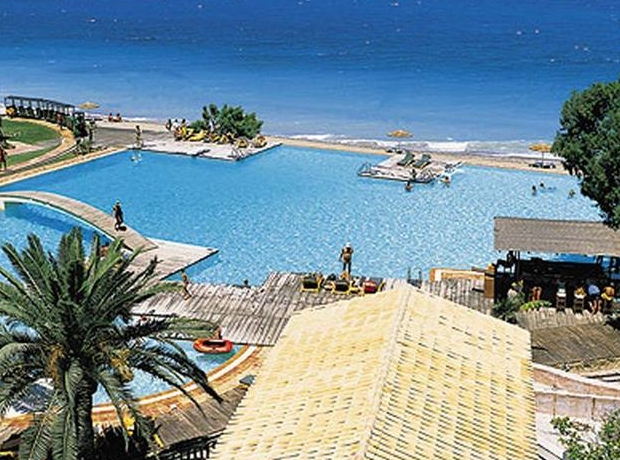 Set amongst extensive lush green gardens, Miramare Park Suites and Villas is the perfect place for both families and couples to unwind in 5-star luxury. Enjoying a prime waterfront location in popular Ixia, Miramare Park Suites and Villas has its own 1.5 km private beach literally outside its door, the perfect spot on which to catch some sun or to try out some of the resort’s great water sport activities. Miramare Park Suites and Villas has a number of great bars and restaurants located within the grounds, with an even larger selection just 5 minutes walk away. You get to choose from a double suite or a selection of waterfront, seafront and VIP villas. The reception is open 24 hours so the friendly staff are always on hand to cater to your every need. The 175 luxurious bungalows are surrounded by acres of beautifully landscaped gardens and all have their own private patio or balcony. The Miramare Park waterfront suites also have their own private terraces and staff can even bring a romantic meal for you to enjoy there if you don’t fancy heading to one of the onsite restaurants. For those who want to explore, a replica 19th century train is on hand to take guests on a tour of the grounds, which includes tennis courts, a stunning swimming pool and poolside bar, and an enchanting lagoon. Other facilities on site include a gym for fitness fanatics as well as a kids’ club and babysitting facilities, giving parents a chance to relax knowing that the kids are having fun and being looked after. Miramare Park Suites and Villas will suit couples looking for a romantic break as well as families. With its stunning private beach, pool and other on site facilities, there really is space for everyone to do their own thing. Miramare Park Suites and Villas are situated right on its own private beach in Ixia, on the northwest coast of the island of Rhodes in Greece. As well as the stunning beach, there are also significant archaeological sites nearby, including the remains of the temple of Zeus and Athena Poliada. The vibrant Rhodes City is also only 4km away, perfect for a spot of shopping. There is an outdoor swimming pool with sun terraces, loungers and parasols, which is surrounded by wooden decking.