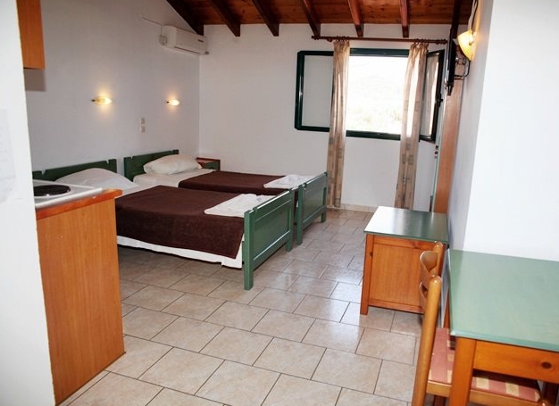 Studios sleep 1/2 or 2/3 with twin beds, air conditioning (payable locally), an open-plan kitchenette with two rings, mini oven & kettle, a private bathroom with shower and an inland view. Two bedroom apartments sleeping 3/5 are also available, an open-plan kitchenette with two rings, mini oven & kettle, a private bathroom with shower and an inland view.
