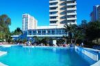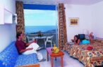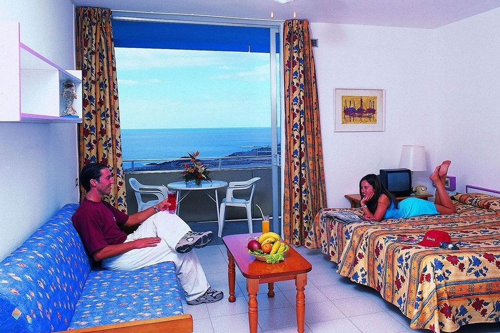 The Fiesta Hotel Paraíso Floral located on the sunny southern coast of Tenerife. It is only 14km far from Playa de las Americas and 25km from the Reina Sofia airport. It has 240 double rooms and 96 family suites with private bathroom, ceiling fan, telephone, rented mini-fridge and safe, satellite TV and terraces with views of the sea. The hotel also has 4 lifts; the Albatros Bar-Restaurant-Buffet and the Sunset Bar; a subtropical garden with fresh water swimming pool, children?s area, solarium and pool bar; saltwater lake by the shore with hammocks and sunshades; bar-restaurant service and children?s playground; lakeside diving school; extensive entertainment programme; small shopping centre; hairdresser; coin operated washing machine and dryer and 24 hour medical service. Open all year.