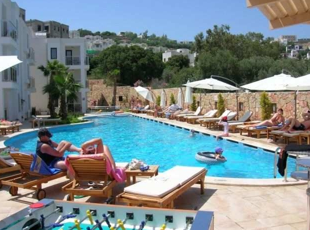 The Queen Resort Hotel is located in the popular resort of Gumbet in the region of Bodrum on the lovely south coast of Turkey. There are 44 comfortable rooms and 2 king suites available at the Queen Resort Hotel which is ideally situated for the nearby shingle beach and a short stroll to many restaurants, bars and shops. Couples and families can enjoy good dining options, sparkling pools for adults and children, a Mini Club, and great spa and fitness facilities; and of course nearby beach fun. Thrill to the climate and hospitality of Turkey and the fun of the sea – book into the Queen Resort Hotel and refresh your spirits. Getting to the hotel: Bodrum International Airport serves. Local tips: 800m to Gumbet’s shingle beach; local restaurants, bars and shops all just a stroll from apartments; 600m to Gumbet resort centre with main nightlife; bus stop directly outside apartments with regular service to Bodrum and Bitez. Please Note – Rates are not valid for Turkish passport holders only.