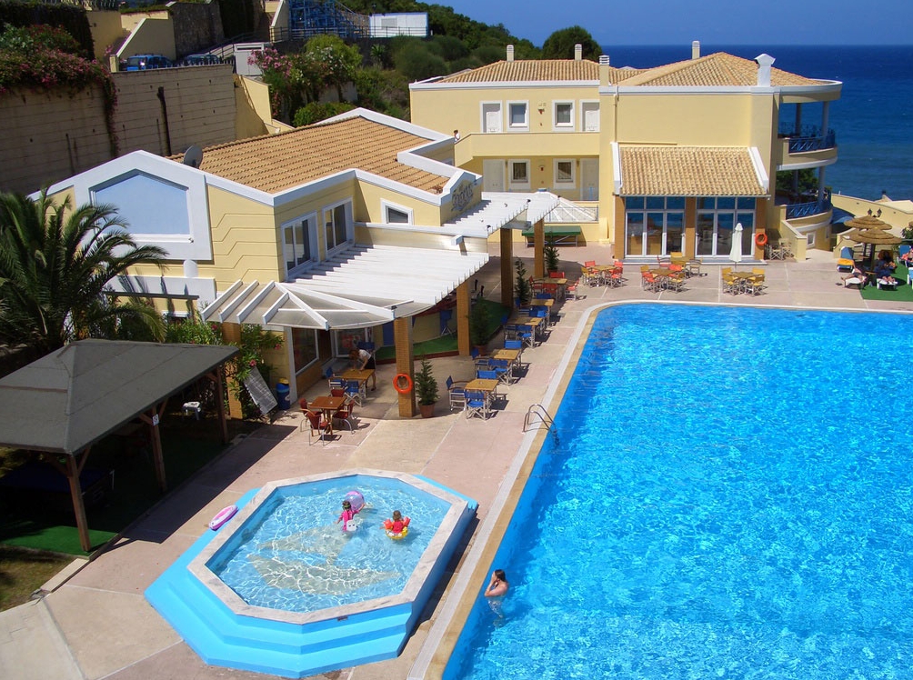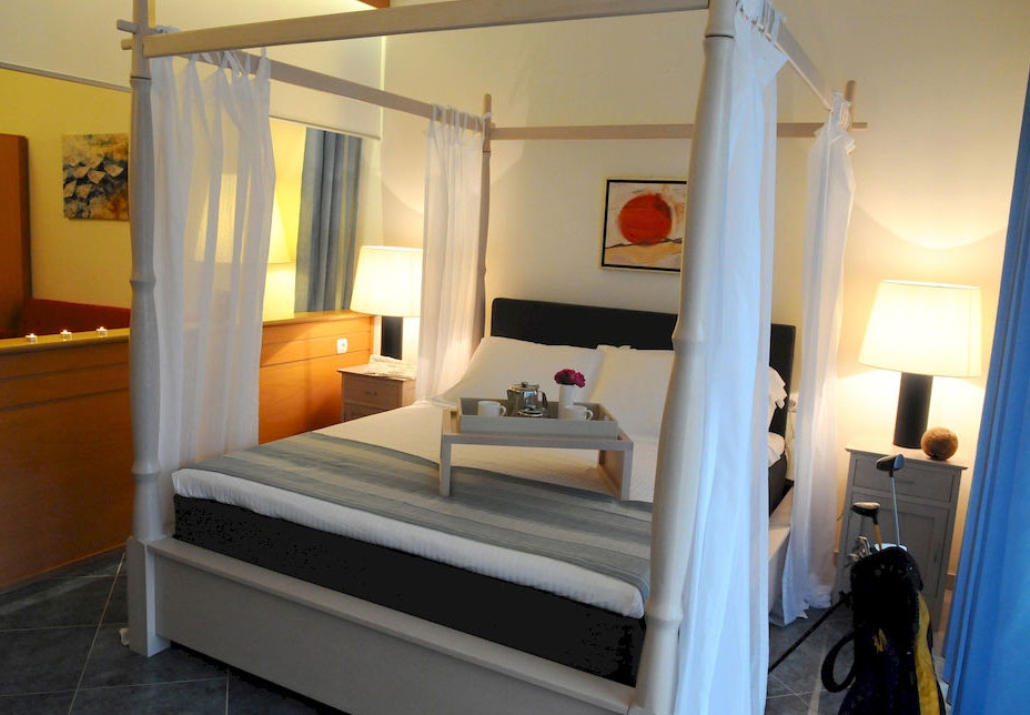 This fantastically located four-star hotel is ideal for a holiday in the sun by the sea. It is set among the wonderful green hills with views of the turquoise Ionian Sea. So much of a holiday by the sea is the view and with the Rosa Bella Suites & Spa you will have sun, sea and sand to look at, with the beach practically in the hotel’s garden.The beach is just a few steps down from the hotel; it couldn’t be any closer. The hotel itself is modern, with spacious rooms and is located close to many activities and sites. For example, there is a nearby diving site as well as a full 18-hole golf course less than a mile away from your room. For sightseeing, the village of Vatos is very close by; so as you can see Rosa Bella Suites & Spa is in a really great spot.This large four-star hotel has rooms for couples and families, with catering options available should you want a half-board or all-inclusive stay. The amenities available are what you require from a modern hotel: outdoor swimming pool with spa services, indoor swimming pool, Mediterranean restaurant on site as well as sports facilities throughout the hotel and grounds.In your room you will have the essentials, such as air-conditioning, satellite television and a bathroom with a balcony overlooking the sea available in some. Whether you are a couple requiring somewhere to sleep while you explore the Ermones area of Corfu or a family wanting an all-inclusive hotel stay you will find what you need at the Rosa Bella Suites & Spa. This hotel is perfect for families or couples looking for a hotel where they can relax and be fed from morning to night.