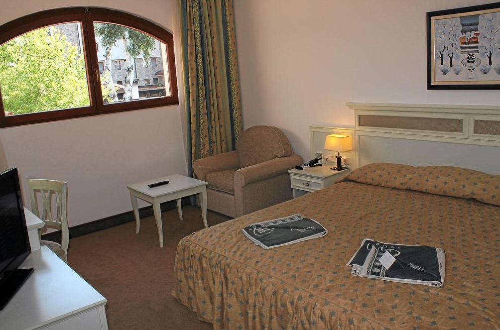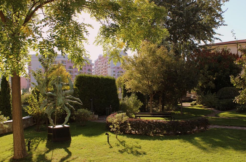 The hotel is located in a quiet area, only 200 m away from the beach and 3 km from the centre of Sunny Beach resort, where there is a tourist office and numerous restaurants, bars and shopping opportunities. Attractions in the area include the Old Town of Nessebar. The hotel is 35 km from Burgas airport and about 120 km from Varna International Airport.The hotel is surrounded by a beautiful garden with a natural creek and picturesque bridges. The architecture carries the spirit of the Bulgarian Revival. Guests are welcomed into a lobby with 24-hour reception and check-out service. The modern furnished rooms are fully equipped with satellite TV, air conditioning and heating, a telephone, SOS button, minibar, in-room safe (additional charge) and a balcony. Each room is en suite with a shower, bath and hairdryer. Further in-room amenities include Internet access, a safe, and tea and coffee making facilities. Guests also enjoy the comfort of a double or king-size bed.