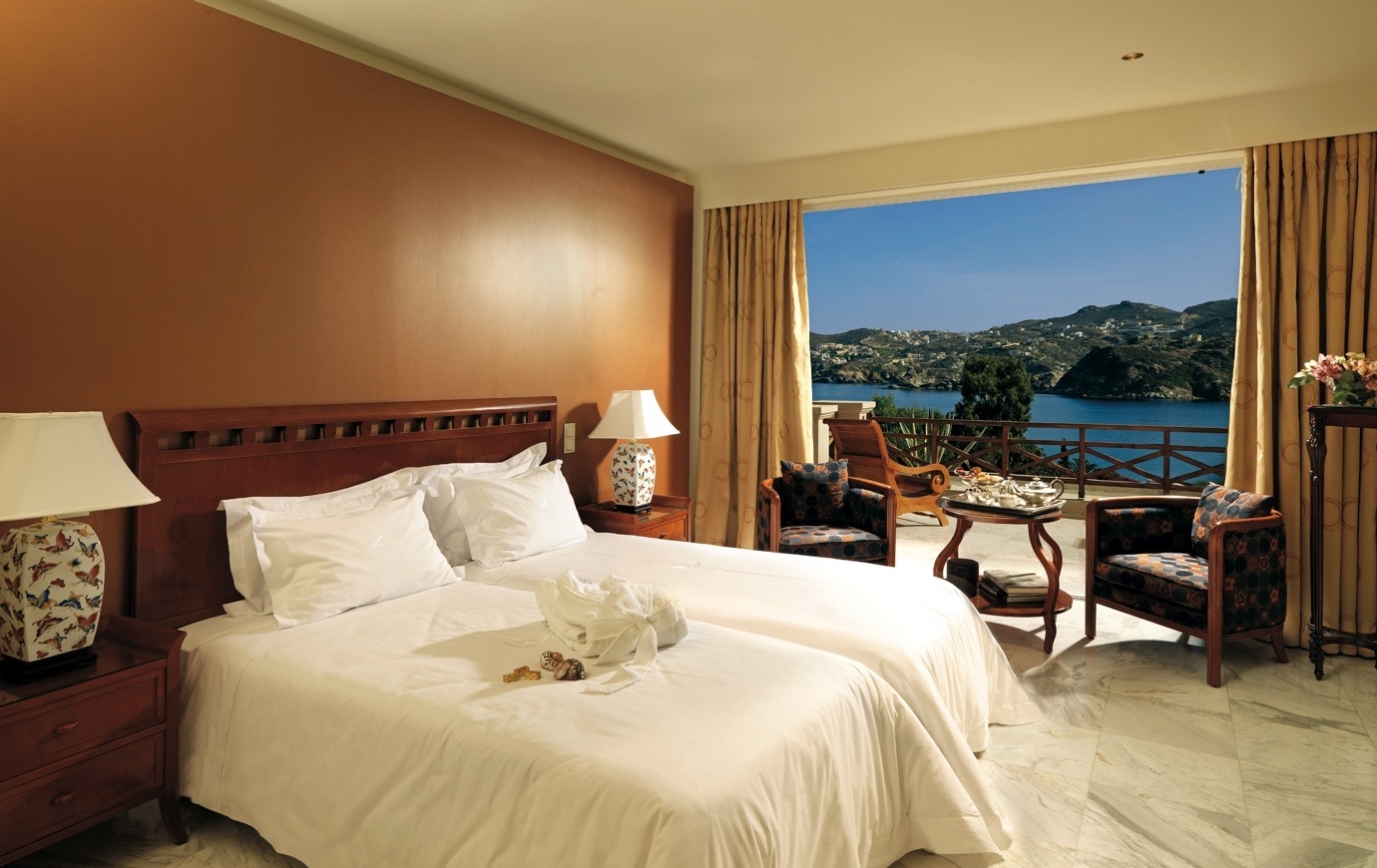 As one of the best among Crete hotels, this property boasts comfortable and luxurious rooms overlooking the colourful gardens and swimming pool or the Aghia Pelaghia beach & bay. All units include individually-controlled air-conditioning, direct-dial telephone line & voice mail, in-room safe deposit boxes, daily replenished mini-bar with premium brands, plasma-screen satellite TV, music channels, private balcony with sitting area, hairdryer, luxurious towels, bathrobes and slippers. What’s more rooms are replenished with beach towels and luxurious toiletries.