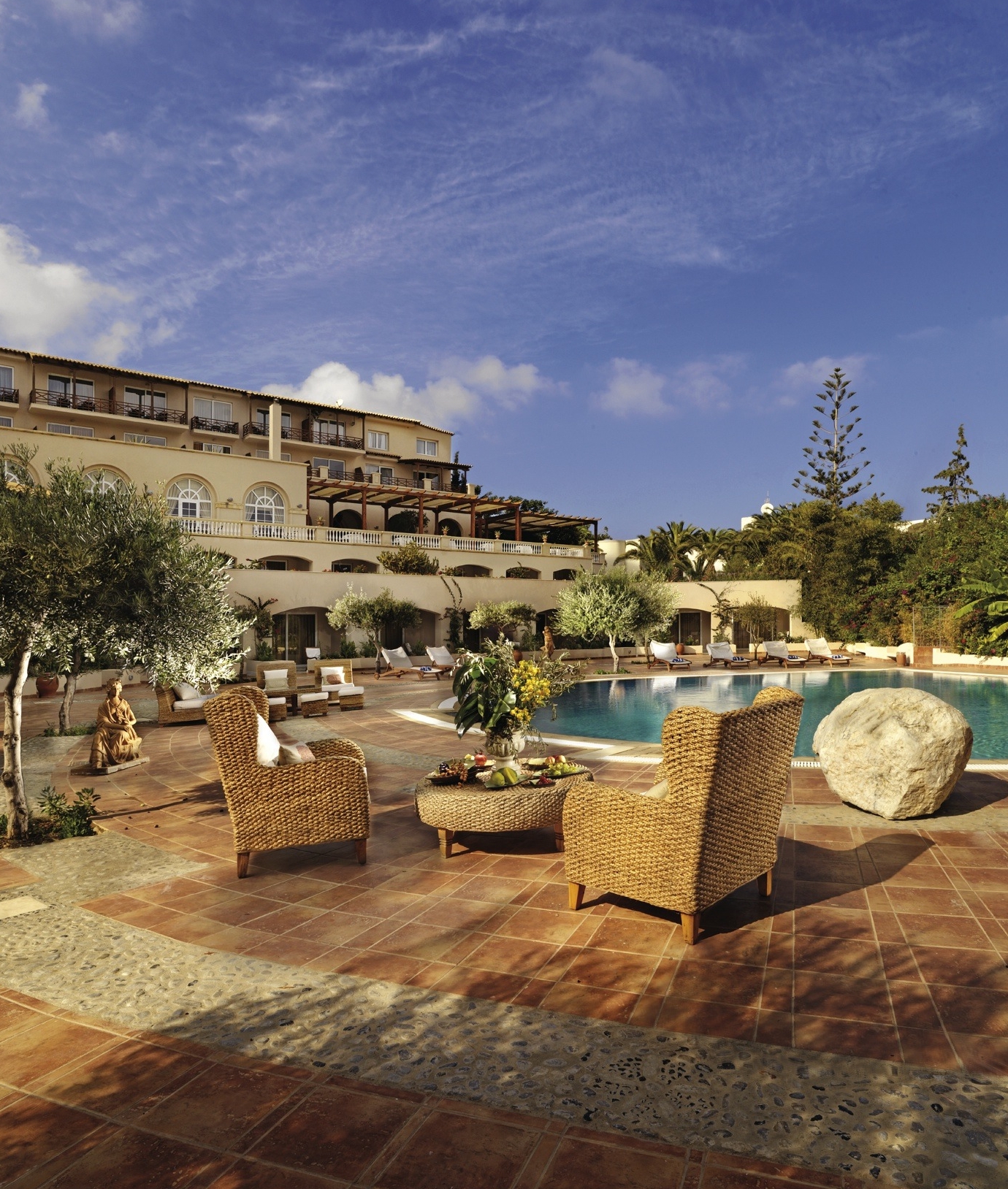 Moreover, guests have the chance to admire the private collection of paintings by famous Greek artists, antique furniture, statues and decorative ornaments from Greece and around Europe blend beautifully with the local Cretan touch of this hotel in Crete.