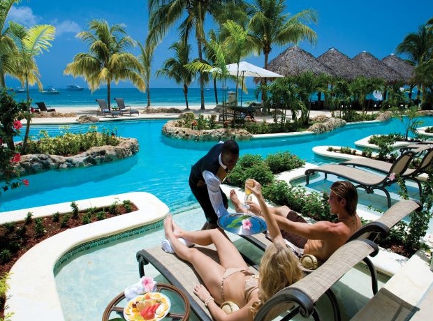 This hotel is both luxurious yet laid-back and cool. It comprises 223 rooms and is a true beach resort with many activities providing guests with fun-packed days. There are 4 restaurants and 6 different types of room. Amongst the facilities count a foyer with 24-hour reception desk, as well as a currency exchange desk. In addition to a shop and a hairdresser, guests are invited to take advantage of 5 bars, conference facilities and public Internet access. Furthermore, a laundry service and car parking is also available. This club resort lies directly on the famous Seven Mile Beach, the longest beach in Negril on Jamaica’s west coast. Negril city centre lies only around a 10-minute drive away. The renowned Rick’s Café is only 14 km from the hotel. Sights such as Mayfield Falls and the Black River are only 64 km and a 60-minute drive away respectively. Sport, sun loungers and parasols are available on the beach, laid out and ready for use. Guests may try their hand at surfing or water skiing, or diving and snorkelling in the crystal clear waters of one of the Caribbean’s best diving sites. For those who enjoy swimming, the hotel features an excellent diving pool and 2 further swimming pools with an outstanding pool bar. Furthermore, guests are able to go on trips in a glass-bottomed boat or play squash, racket ball and tennis in the well-equipped sports centre. The hotel features 2 different, cutting edge gyms for guests’ use and sailing, kayaking and canoeing are also possible. The complex features 2 Jacuzzis, a sauna and a steam bath as well as a sun terrace with sun loungers and parasols laid out ready for use. In addition, there are massage and spa treatments on offer, and guests are invited to try their hand at aerobics, aqua aerobics, table tennis, billiards, darts and golf and for extra amusement, the hotel offers an entertainment programme.