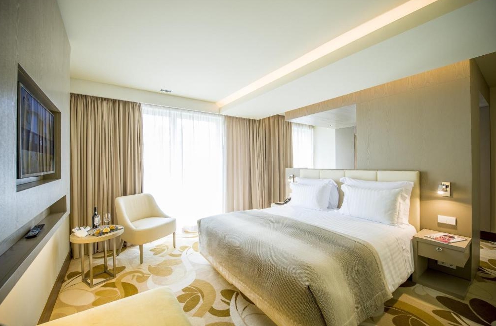 The Hotel has 105 rooms, a Restaurant a la carte UQ, 2 bars, including the Lounge Bar Vicius on the 6th floor with views over the city and the river.