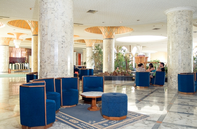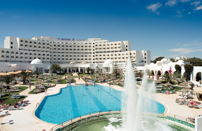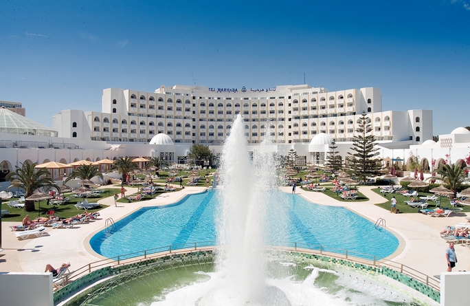 This very attractive, well maintained hotel has a wonderfully welcome Tunisian atmosphere and is a popular choice with most travellers but ideal for those who choose a holiday to Tunisia, to experience the rich historical sights and enjoy the culture, which they’ll find virtually on the doorstep. This hotel boasts an enviable position located 1km from the animated colourful town of Sousse, and only 100m from the well known beach of Boujaafar.One thing this hotel prides itself on is its food. The Tej Marhaba has three restaurants The Kheima, The Barbeque Diner and The Dolce Vita, each serving their own unique dishes. The Tunisian specialities found here are a ’must try’.Guests staying here will also be well catered for, with the many facilities and hotel activities on offer, such as the two swimming pools to cool off in or relax by, three bars including a home from home English pub the Rose and Crown to unwind in, this hotel even has its own shopping centre for all those last minute souvenirs. And if you’ve got the energy when the sun goes down, the Tej Marhaba provides frequent evening entertainment and disco that’s open most nights, so you can dance the night away. Location250 metres from the sandy beach and approximately 1 km from the amenities of Sousse centre. There are restaurants and shops in the hotels own shopping centre and bars and restaurants in the immediate vicinity. Features: Outdoor freeform pool Indoor freeform pool Sun terrace with free sun loungers and parasols Main buffet restaurant Pool bar Lounge bar Pub Sports bar with widescreen TV Moorish café Regular daytime activities Regular evening entertainment including live music Disco Fitness room Sauna Steam bath Massage 24hr reception Tej Marhaba shopping centre RoomsStandard rooms sleep up to 3 adults and have twin beds (plus an extra bed if required).