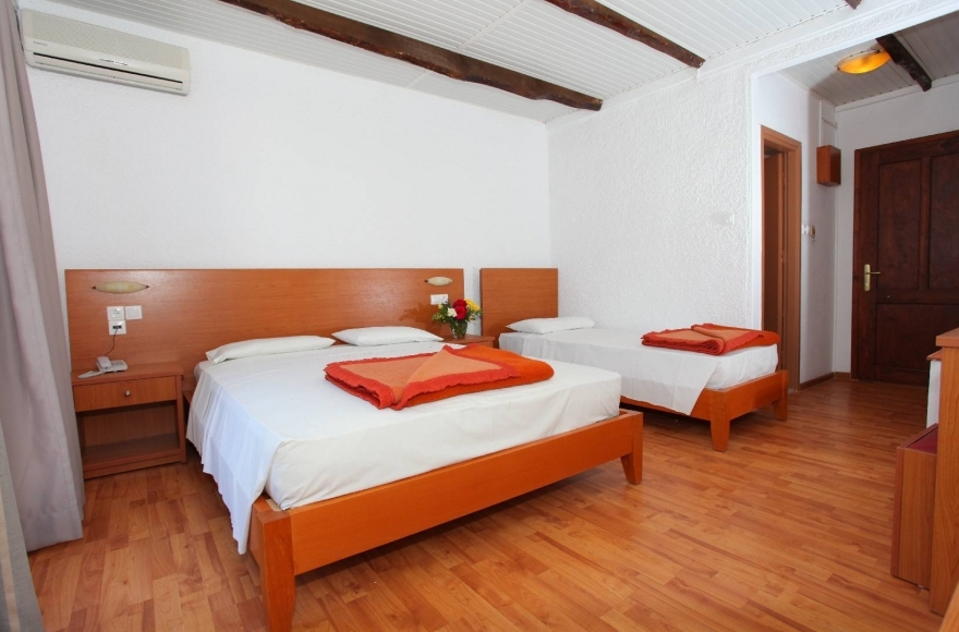All rooms are spaciousand comfortably equipped with direct telephone, refrigerator- hair dryer- shower- radio- T.V- split unit air-conditionig (at charge) and safety deposit boxes available inside all rooms with an extra charge. All rooms have balconies- terraces or verandas. The property is not suitable for people with walking disabilities or guests using a pushchair.